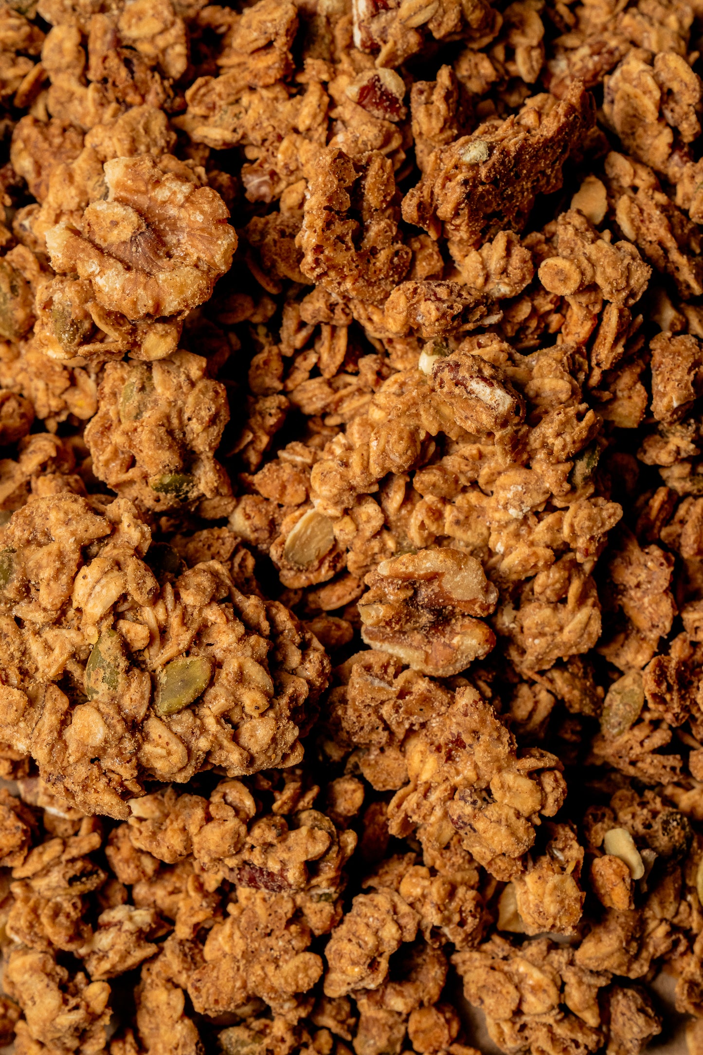 We start every batch with the highest quality nut and seed butters because that is how we would make it at home. They are the heart of our granola, adding rich flavor, holding the clusters together, and creating a crunch that is satisfying but never hard to chew.