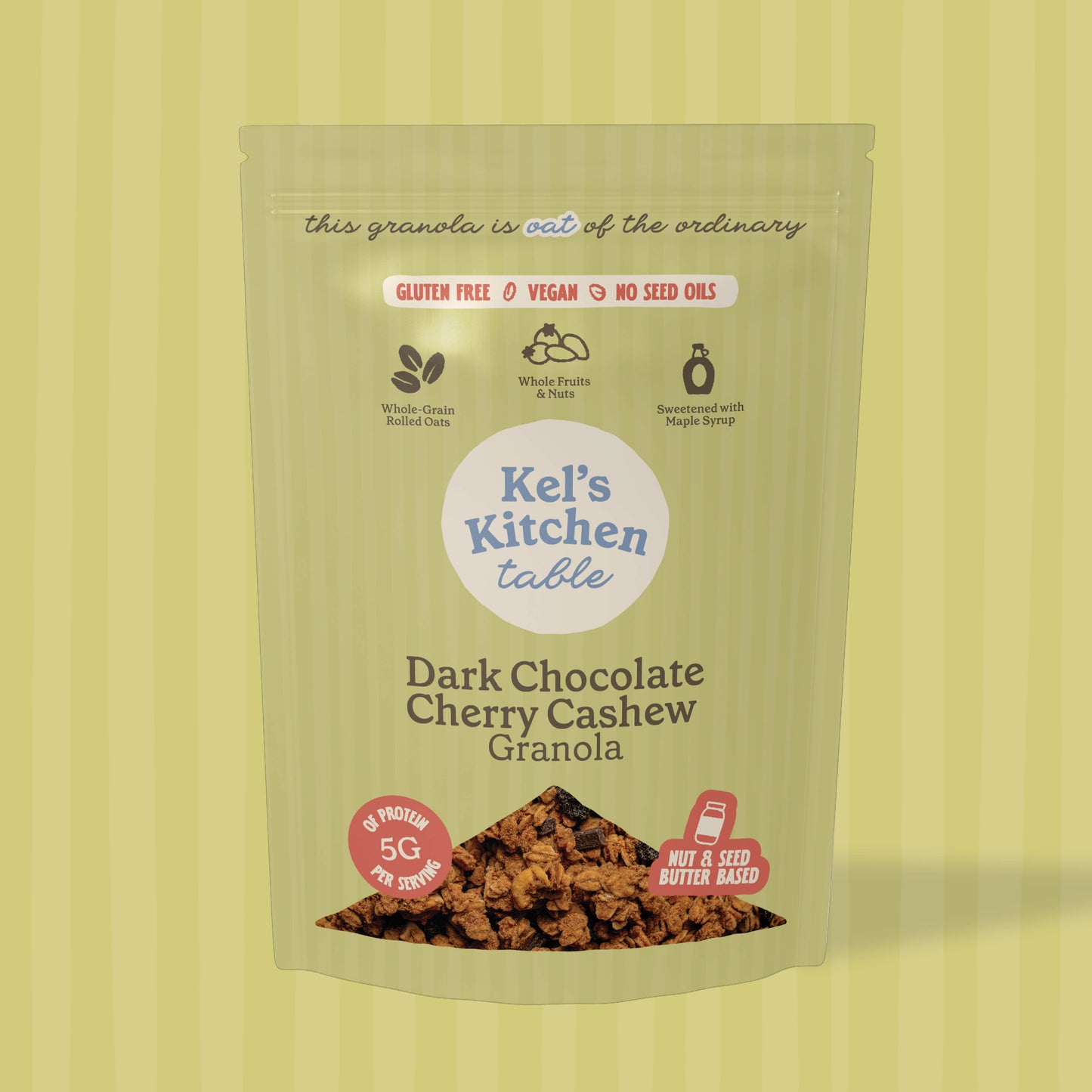 ADDICTED! My 25 year old daughter and I can't eat any other granola and we are so spoiled by Kel's. Crunchy, healthy, flavorful, fresh baked, and the best part is the TASTE. OH MY WORD - put this on a monthly rotation and fight with your family members to devour the bag!