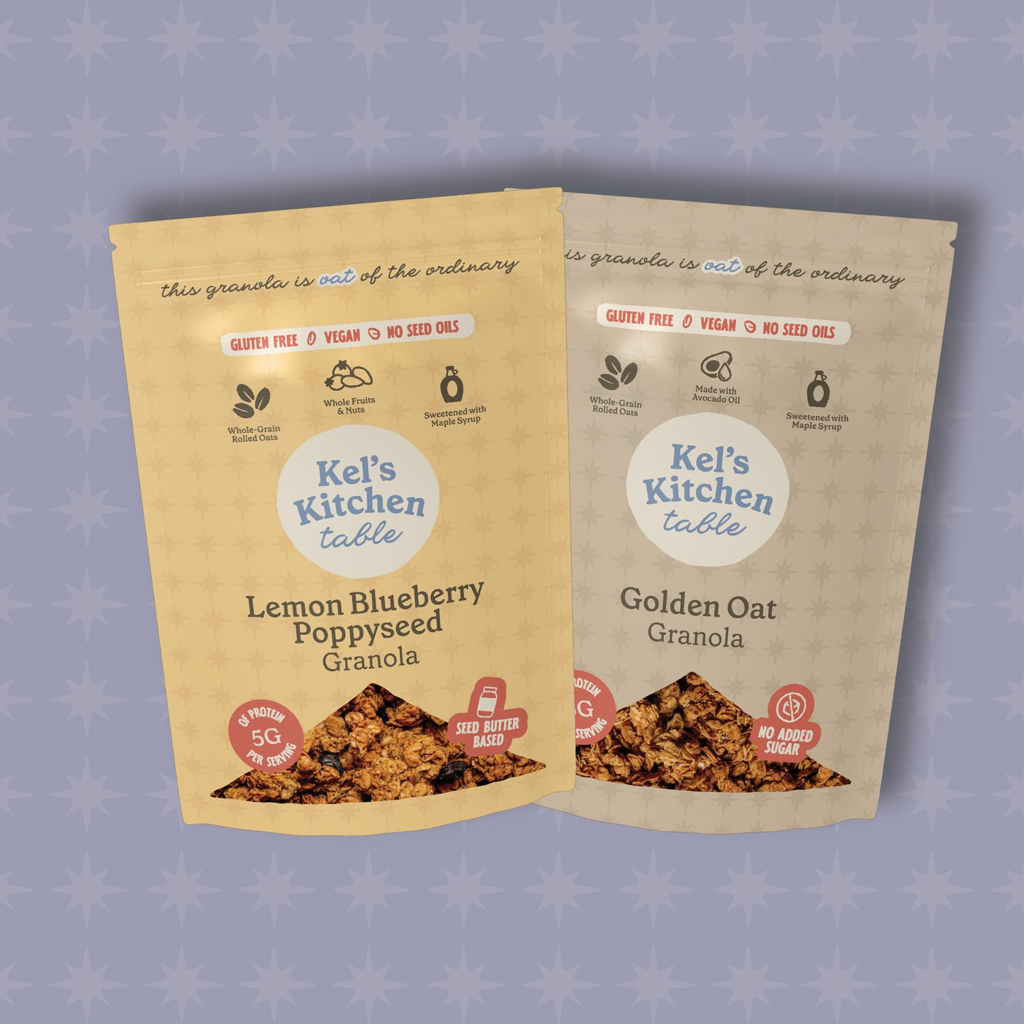 Kel's Kitchen Table started because granola deserved better. It had been stuck on top of yogurt bowls for too long, treated like a garnish instead of a snack, made with seed oils and shortcuts instead of real ingredients. So we set out to build the version we wanted to eat, one with nut and seed butters at the base, real flavor in every batch, and a format that fits how people actually snack today. What started as one recipe at a farmer's market is now a brand on shelves across the Northeast, but the way we work hasn't changed. Every bag is made with the same care it was on day one, because we know the person opening it, and we want every bite to feel worth coming back for.